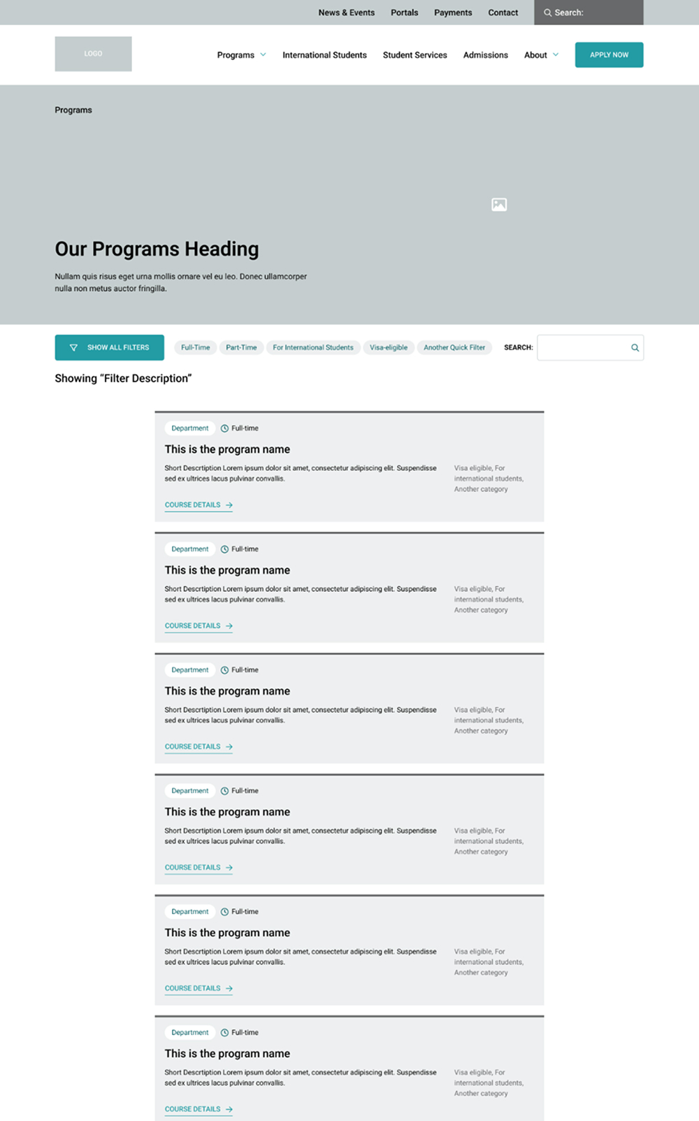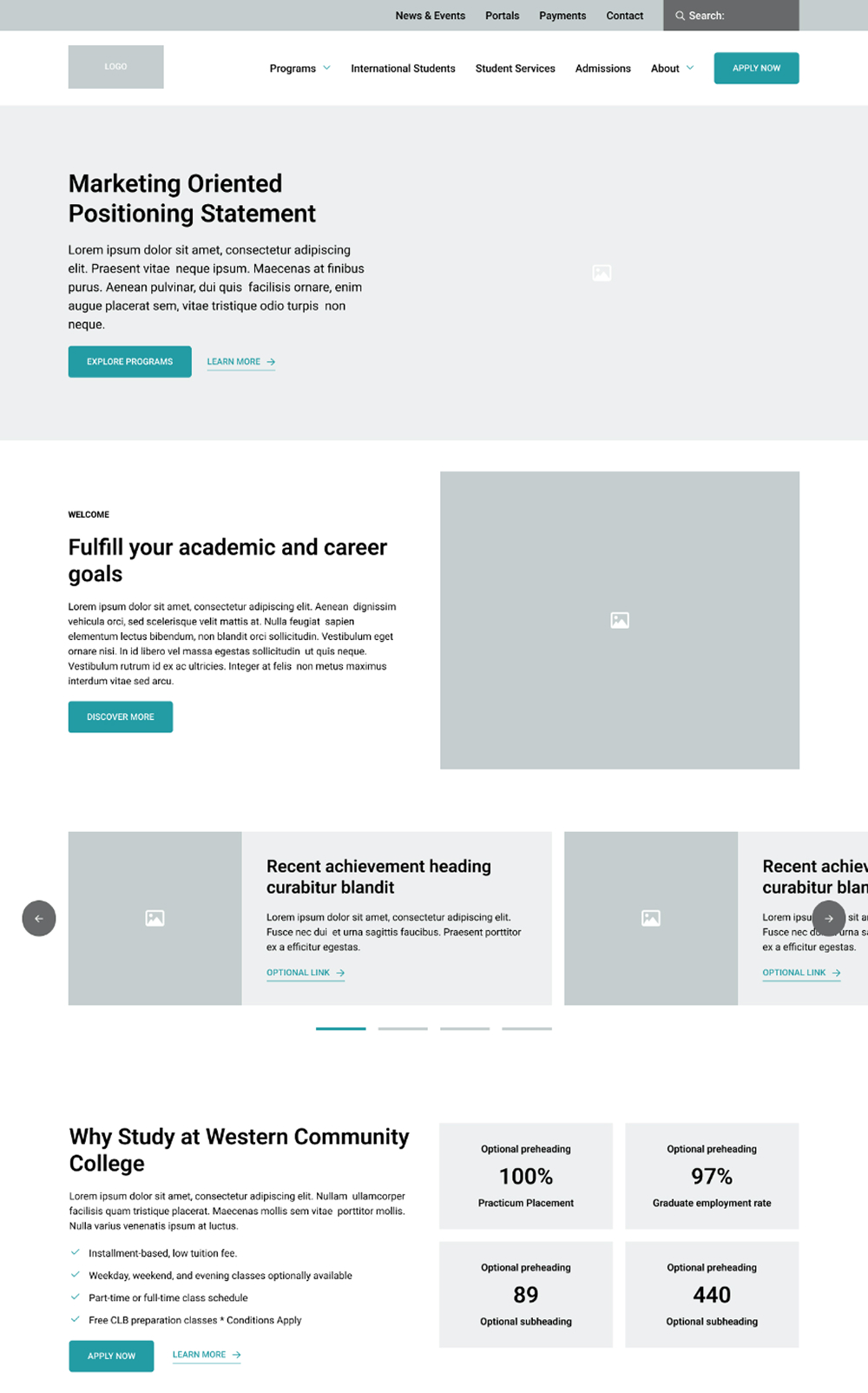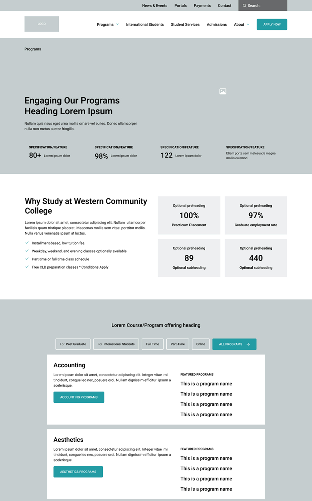The focus of this website redesign was on smoother navigation and a cleaner presentation of information. This was especially important to support their many international students in quickly finding details about permit-eligible programs, credit transfers, and post-graduate pathways to work in Canada. Through our sitemap and wireframe work, we strategized the best way to make all of that content easily discoverable.