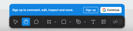 When you click the link to the first Figma deliverable, the preliminary sitemap, you’ll see the option at the bottom of the screen to sign up or use your Google account.