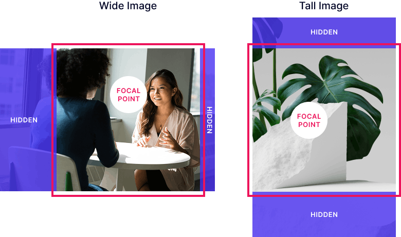 A focal point can be set so that when the Image Cover setting (above) is used, you can control which areas of the image are cut off.