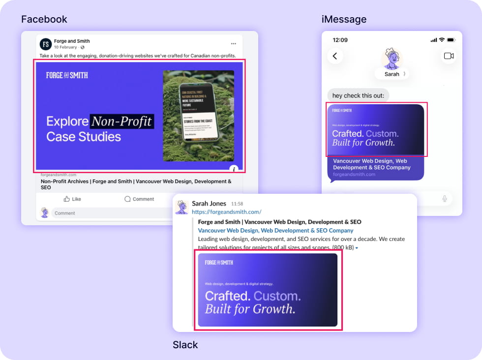 Social share images are the images that appear when links are shared on social media, DMs like Slack, and are seen in mobile search results.