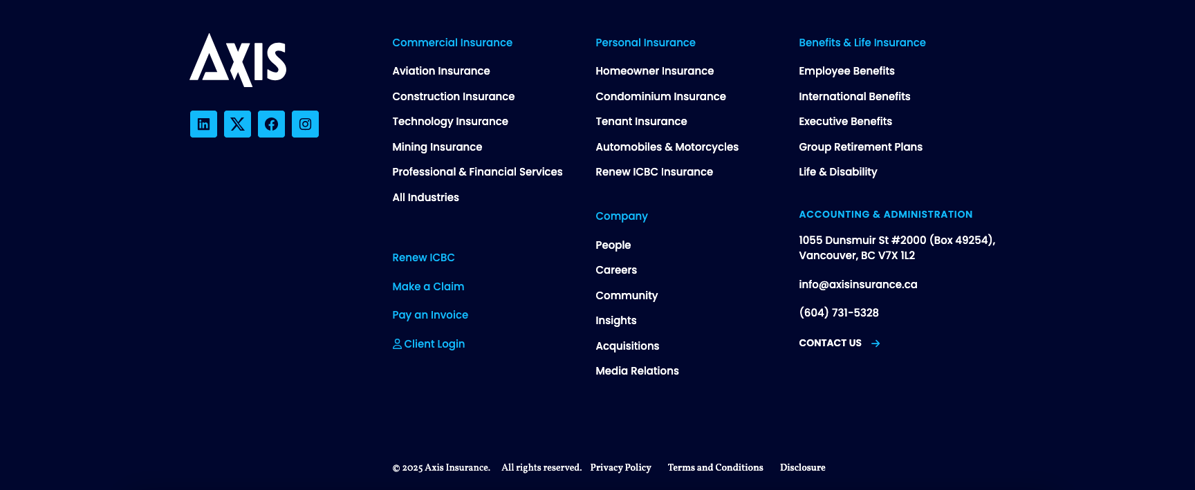 The footer menu sits at the bottom of all pages.