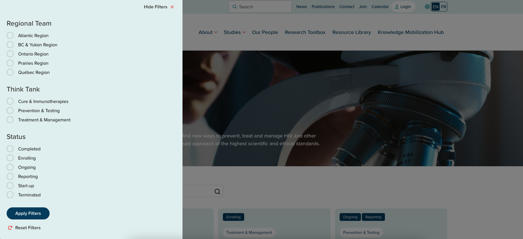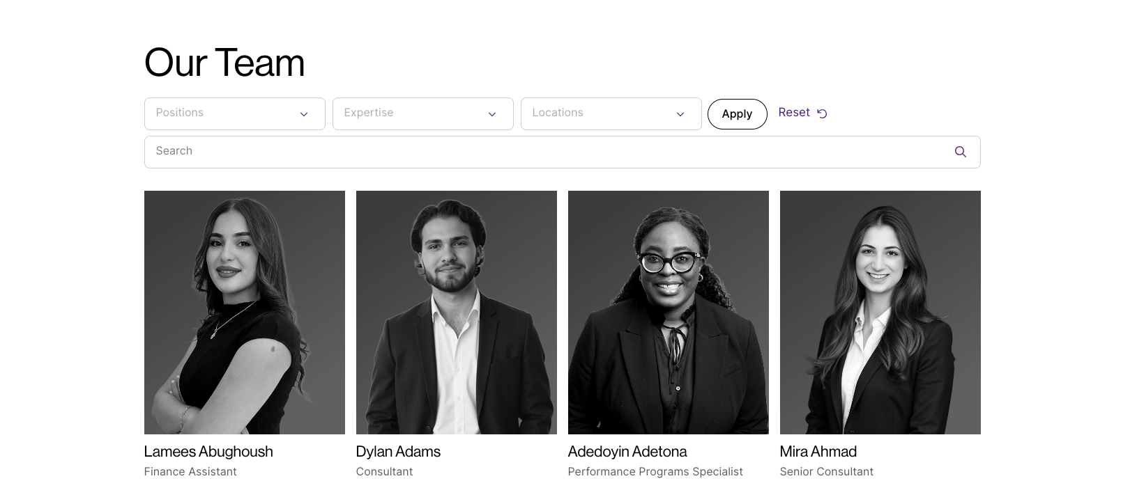 This last example is from a company that has a huge volume of team members, and we built them as a post type. This enables them to be filterable via taxonomies.