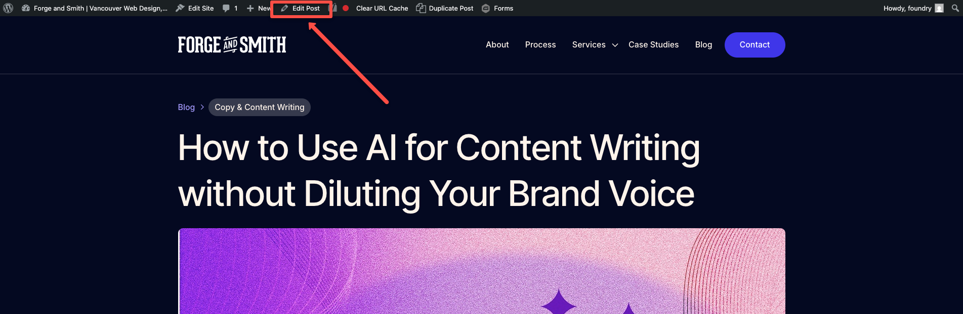 - Click “Edit [Post]” while viewing the live/frontend view of the post