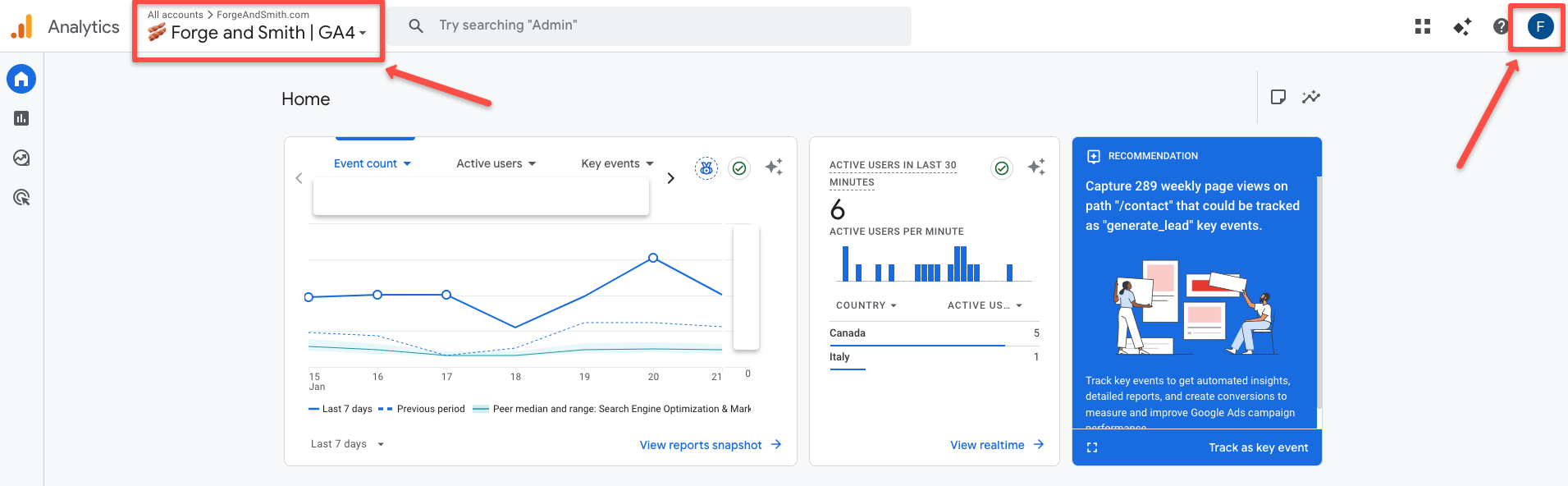 GTM is where you can configure tags that add more custom data points to track in GA4, beyond the default events and the events that we (Forge and Smith) configured at launch.